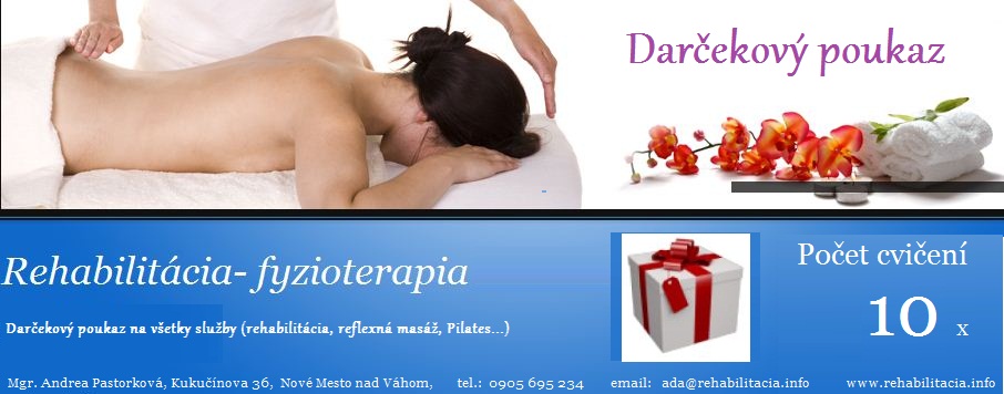 Potešte svojich najdrahších, prípadne dobrých priateľov a darujte im k sviatku, výročiu alebo len tak pre radosť netradičný darček - odborné rehabilitačné cvičenie.
